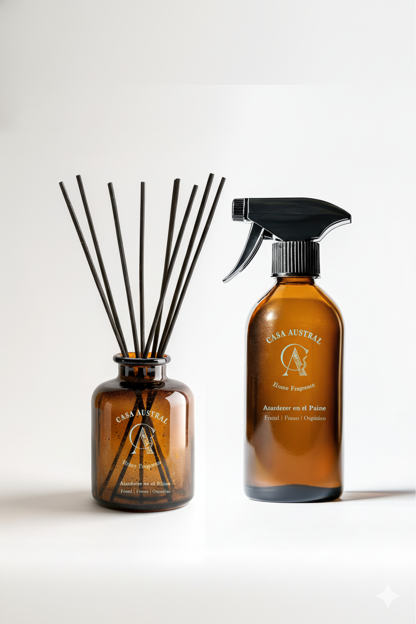 Captura la esencia mágica de la Patagonia en un solo set. Este pack combina nuestros dos sistemas de aromatización para ofrecerte un ambiente acogedor y relajante: el difusor de varitas, que garantiza una fragancia sutil y constante, y el home spray, ideal para transformar el ambiente de forma inmediata.